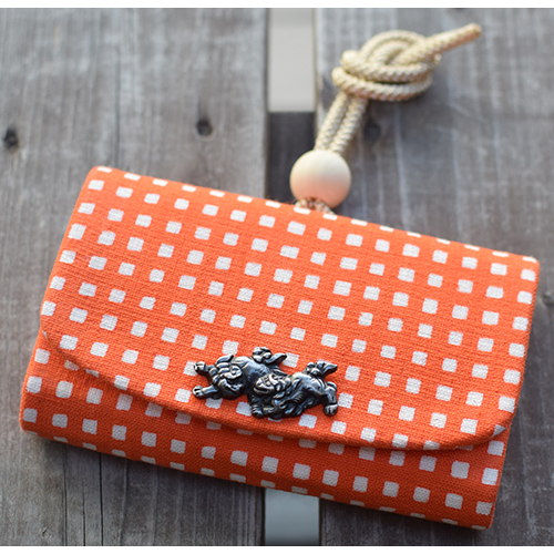 煙草入れ 久保田 一分角通 朱 前金具・狛犬